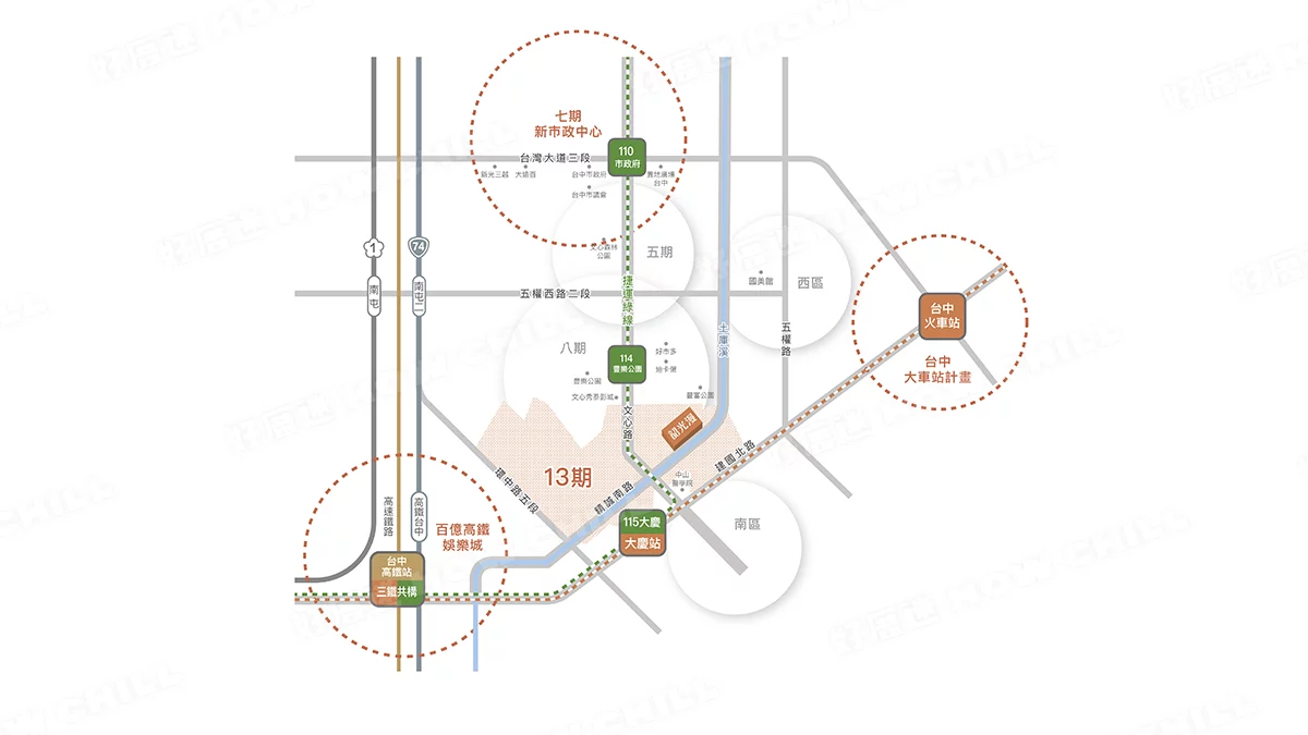 | 公共建設 | 南屯運動中心、足球園區、高鐵新市鎮生態公園 |