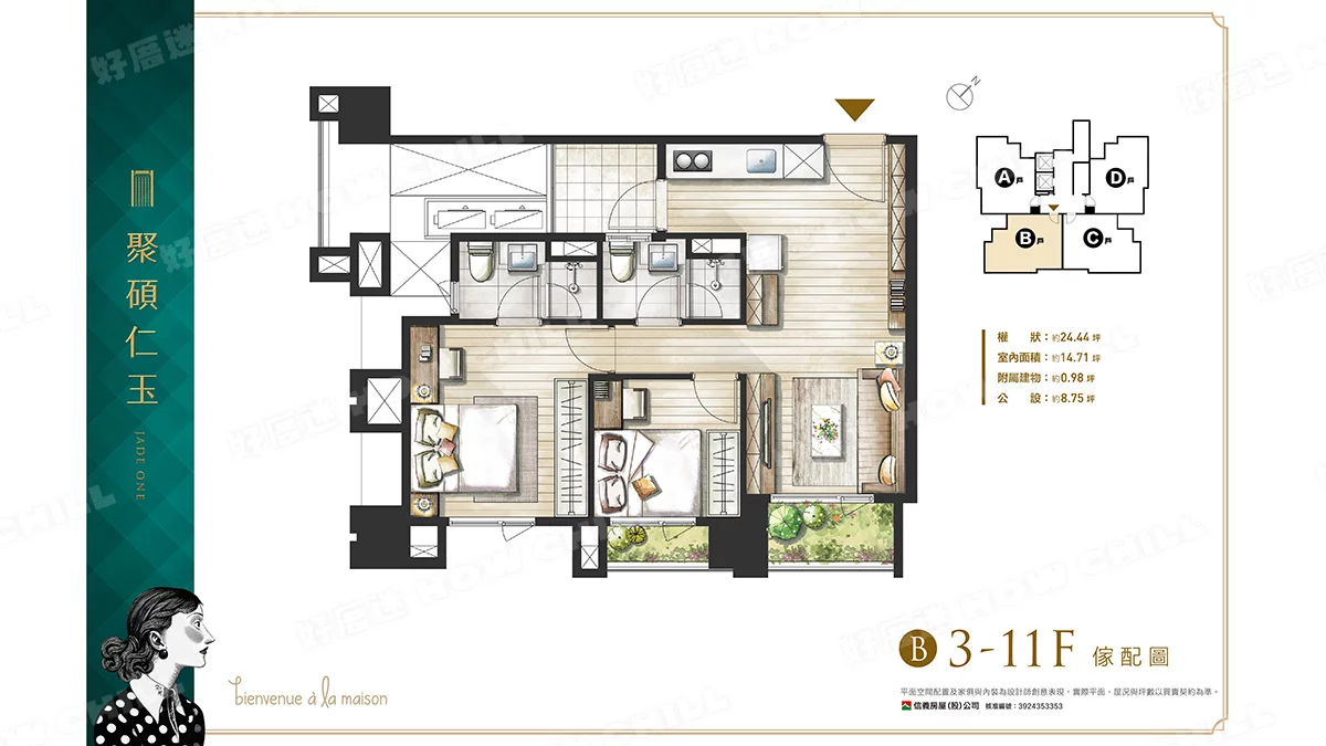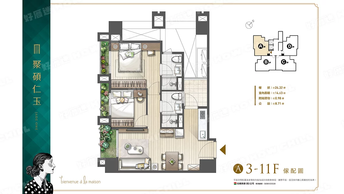 二房 (24.32~24.44坪)