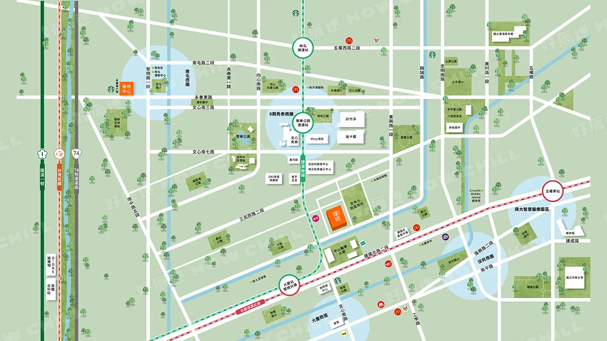 | 公共建設 | 南屯運動中心、足球園區、高鐵新市鎮生態公園 |